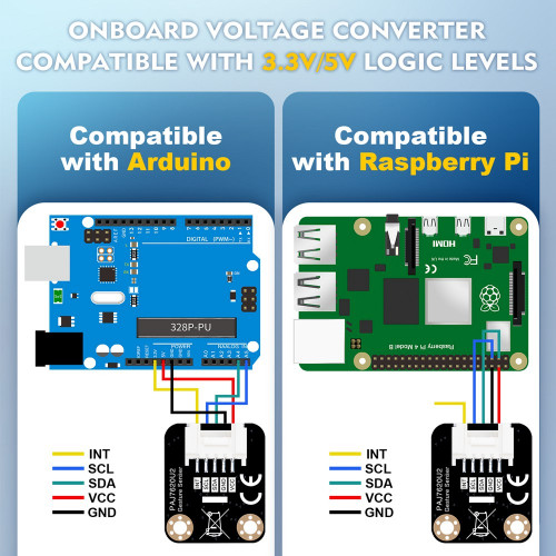 Onboard voltage translator, compatible with 3.3V/5V operating voltage, Compatible with Raspberry Pi, Arduino, STM32 and other motherboards.