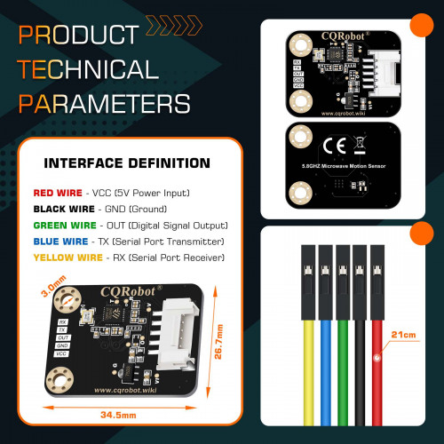 Wiki: http://www.cqrobot.wiki/index.php/5.8GHz_Doppler_Effect_Microwave_Motion_Sensor_SKU:_CQRSENWB02