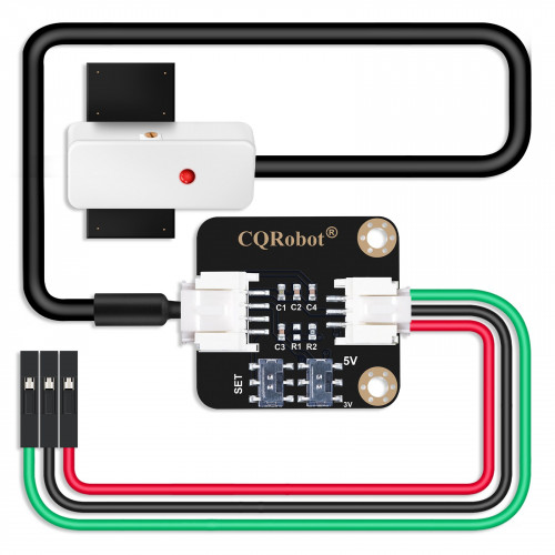 CQRobot non-contact liquid level sensor realizes non-contact detection of liquid level in closed containers. It uses advanced signal processing technology and high-speed signal processing chip to break through the influence of container wall thickness. It is easy to install and use, and can detect the liquid level of various toxic substances, strong acids, strong alkalis and various liquids in high-pressure closed containers. The sensor is equipped with 2 DIP switches and is compatible with Arduino, Raspberry Pi and other motherboards.