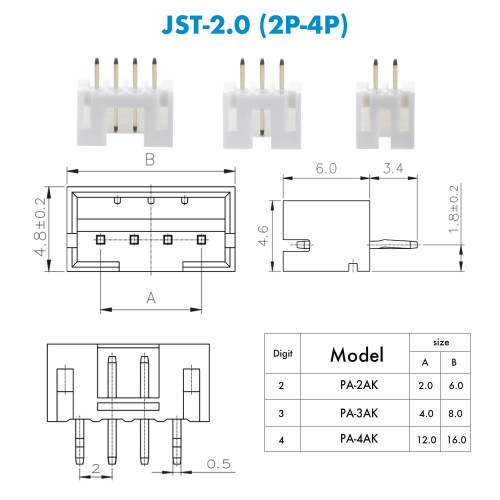 JST PH - 2 / 3 / 4 Pin Connector Kit (750 PCS)