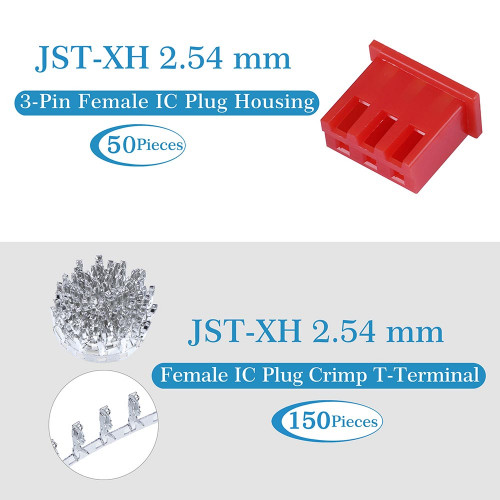 1 * Red JST XH SIP 2.54mm Pitch 3 Pin JST Connector Kit (50 Sets/250 Pieces)