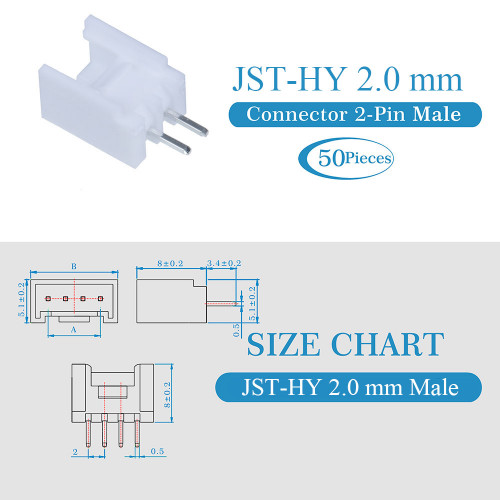 1 * 2.0mm Pitch JST - HY 2-Pin JST Connector Kit (200 Pieces/50 Set)