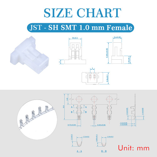 1 * JST-SH-SMT 1.0 mm Pitch 2 Pin JST Connector kit ( 100 Sets/200 Pieces)