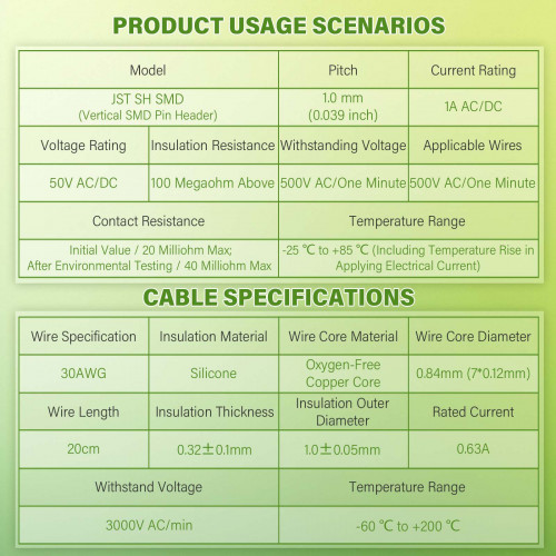 JST 1.0 mm SH VHR 4-Pin Connector 30AWG 20cm Silicone Cable (10 Sets / 40 Pcs)
