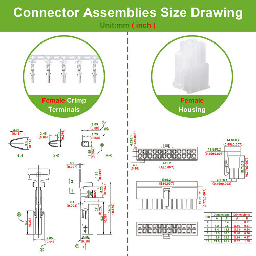 1 * 120 pieces 4.2mm pitch female crimp terminals, bundled with green cable ties