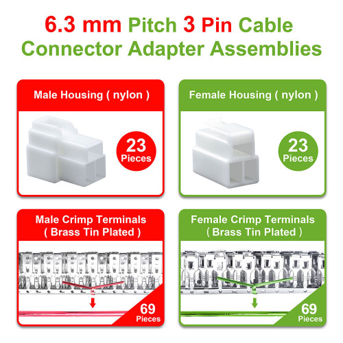 6.3 mm Pitch 3 Pin Automotive Cable Connector Adapter Assemblies Kit.