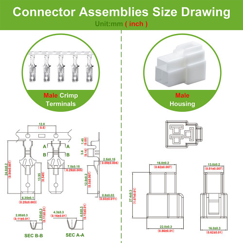 • Male Housing Length: 27.4±0.3 mm