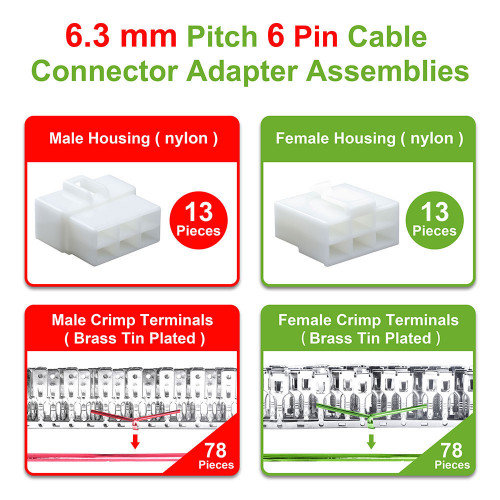 6.3 mm Pitch 6 Pin Automotive Cable Connector Adapter Assemblies Kit.