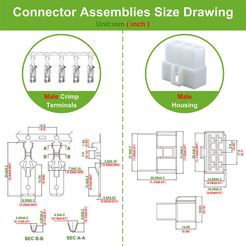 - Male Housing Length: 27.8±0.3 mm