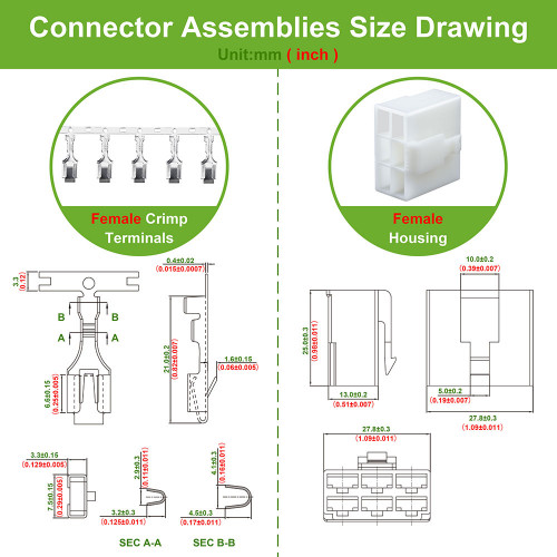 - Female Housing Length: 25±0.3 mm