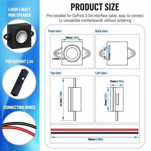 Passive Mini Speaker 4Ω 3W, DuPont 2.54mm Interface.