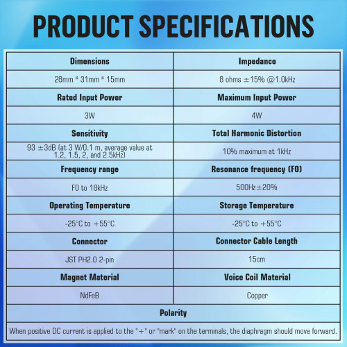 Passive Mini Speaker 8Ω 3W, JST-PH2.0 Interface.