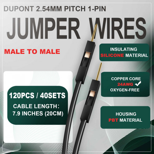 DuPont 2.54 mm 1-Pin Black Male-Male Connector 24AWG 20cm Silicone Cable (40 Sets / 120 Pcs)