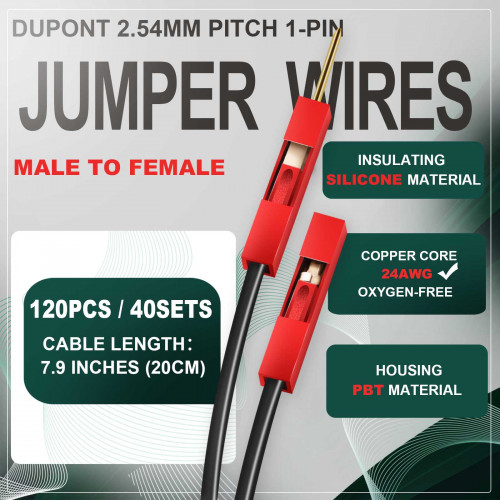 DuPont 2.54 mm 1-Pin Red Male-Female Connector 24AWG 20cm Silicone Cable (40 Sets / 120 Pcs)