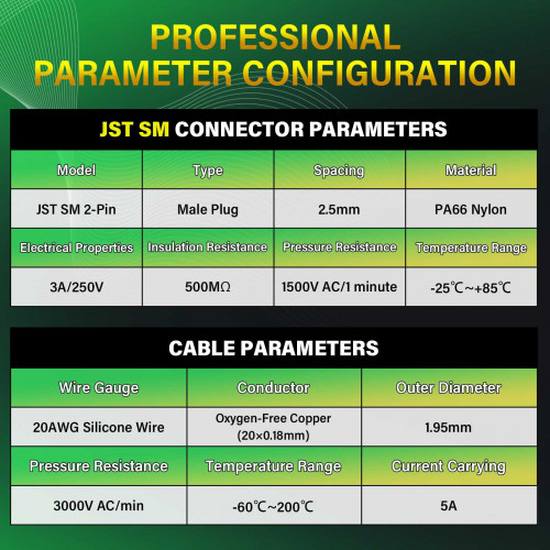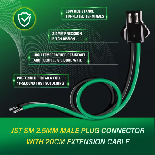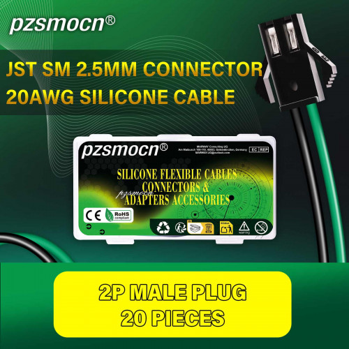 JST SM 2.5 mm 2 Pin Male Plug 20AWG 20cm Silicone Cable (20 Pieces)