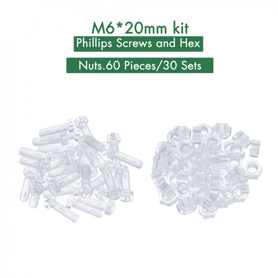 60 Pieces / 30 Sets M6 * 20 PC Transparent Acrylic Screws and Nuts Kit * 1