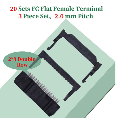 2.0 mm 2*8 Double Row 16 Pin IDC Rectangular Socket Connector FC Flat Female Terminal 3 Piece Set