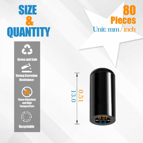 Black Silicone End Caps M6*13mm (80pcs)