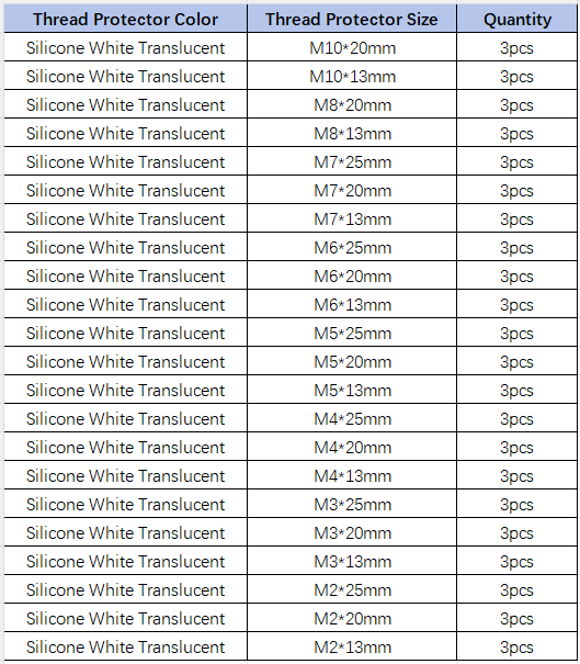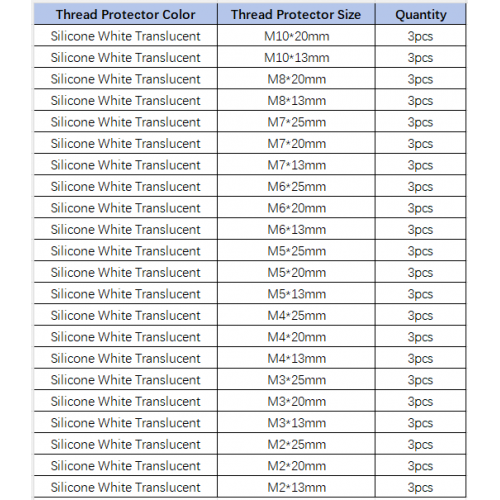 Note: For more specifications of silicone thread protectors series, please refer to Wiki [SKU: CQRBHT]. Other silicone thread protectors can be customized on demand, please contact email: service@cqrobot.com.