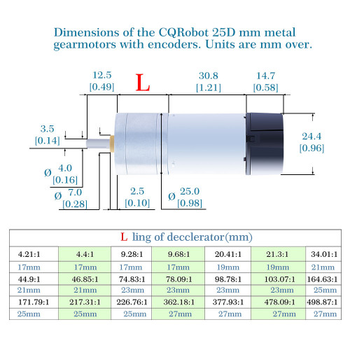 20.41:1 MP Metal DC Geared-Down Motor 25Dx62.5L mm 4.5W/12V,with 48 CPR Encoder and Fix Bracket.