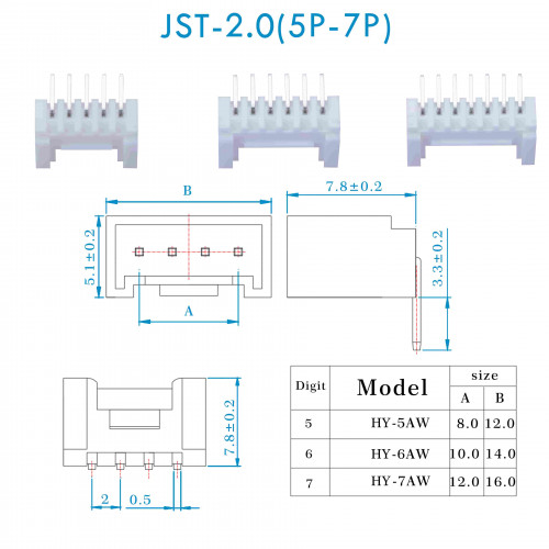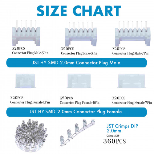 1 * JST 2.0mm HY SMD - 5 / 6 / 7 Pin Connector Kit (480 pcs)