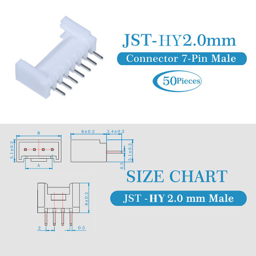 1 * 2.0mm Pitch JST - HY 7-Pin JST Connector Kit (450 Pieces/50 Set)