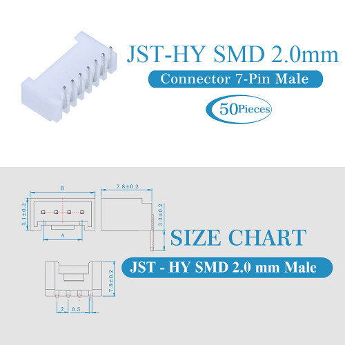 1 * 2.0mm Pitch JST - HY SMD 7-Pin JST Connector Kit (450 Pieces/50 Set)