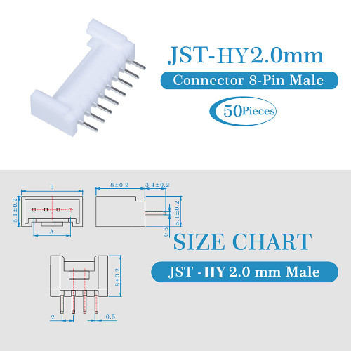 1 * 2.0mm Pitch JST - HY 8-Pin JST Connector Kit (500 Pieces / 50 Set)