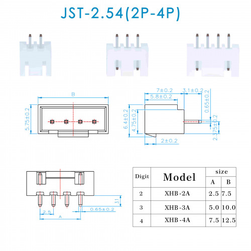 1 * JST 2.54mm XHB - 2 / 3 / 4 Pin Connector Kit (450 pcs)