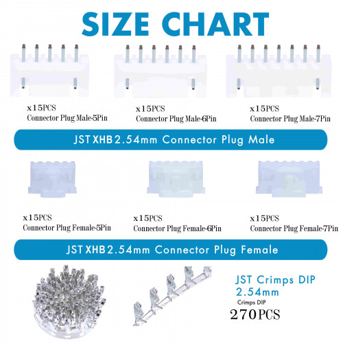 1 * JST 2.54mm XHB - 5 / 6 / 7 Pin Connector Kit (360 pcs)