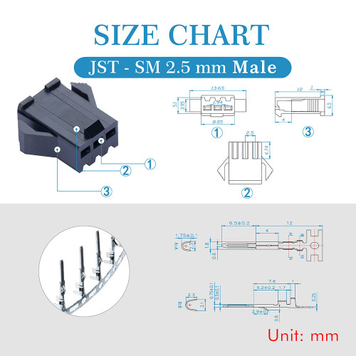 JST SM 2.5 mm 3-Pin Connector Kit