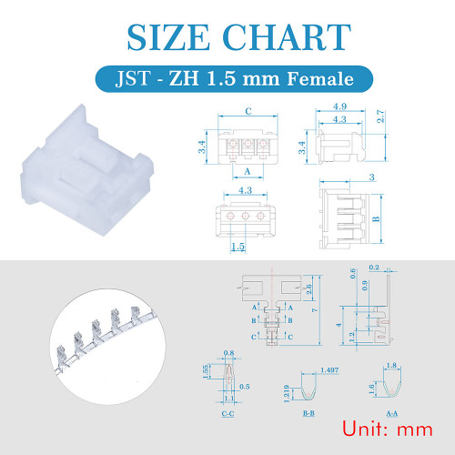 1 * 1.5 mm Pitch JST - ZH 2-Pin JST Connector Kit (400 Pieces/100 Set)