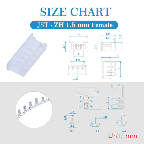 1 * 1.5 mm Pitch JST - ZH 5-Pin JST Connector Kit (700 Pieces/100 Set)