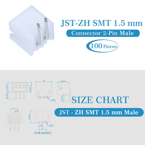 1 * 1.5 mm Pitch JST - ZH SMT 2-Pin JST Connector Kit (400 Pieces/100 Set)