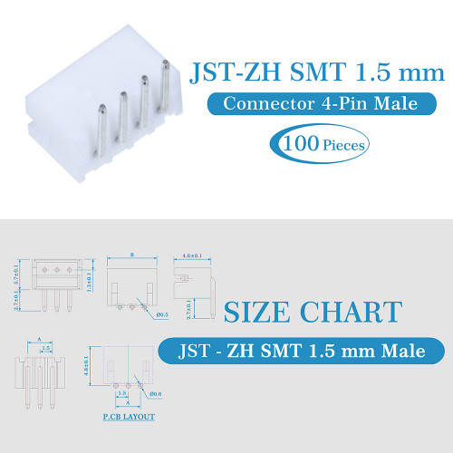 1 * 1.5 mm Pitch JST - ZH SMT 4-Pin JST Connector Kit (600 Pieces/100 Set)