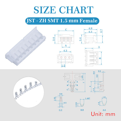 1 * 1.5 mm Pitch JST-ZH SMT 8-Pin JST Connector Kit (500 Pieces/50 Set)