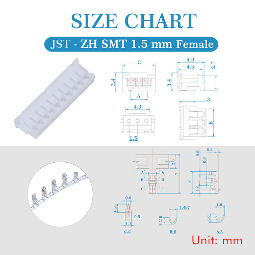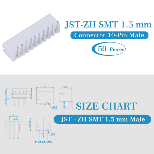 1 * 1.5 mm Pitch JST-ZH SMT 10-Pin JST Connector Kit (600 Pieces/50 Set)