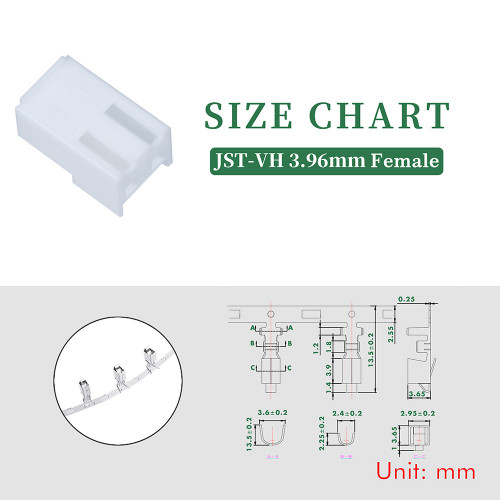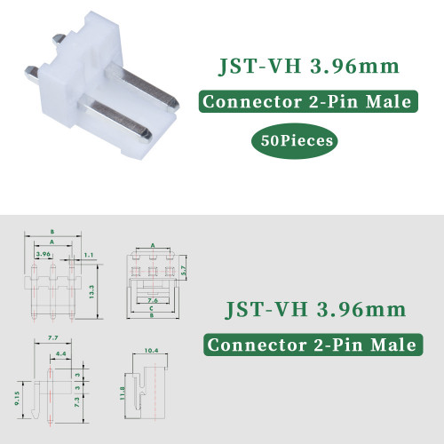 1 * JST 3.96mm/Pitch VH 2-Pin Connector Kit (200 Pieces/50 Set)