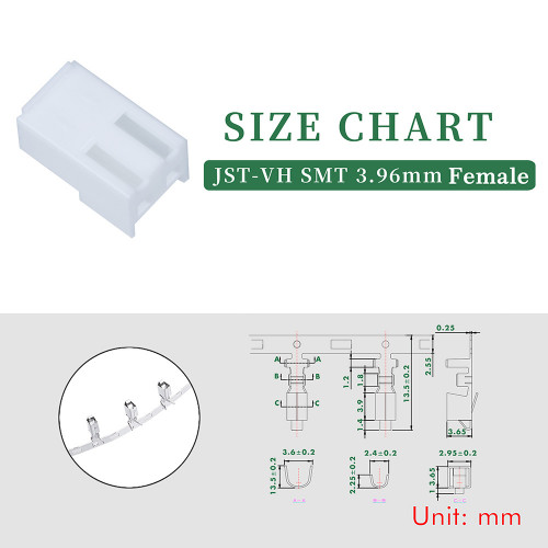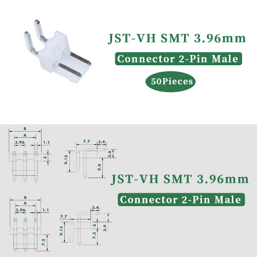 1 * JST 3.96mm/Pitch VH SMT 2-Pin Connector Kit (200 Pieces/50 Set)