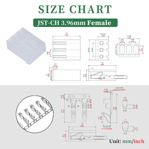 1 * JST CH 3.96 mm 3-Pin Connector Kit (50 Sets / 250 Pieces)