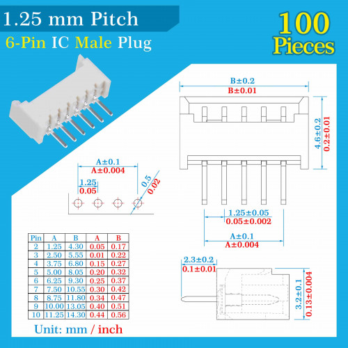 1 * 1.25 mm Pitch 6 Pin Connector kit (100 Sets/800 Pieces)