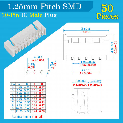 • Model: 1.25 mm (0.049 inch) SMD 10 Pin