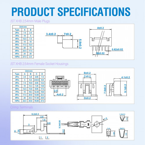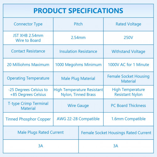 • Connector Type: JST XHB 2.54mm 2-Pin Wire-to-Board