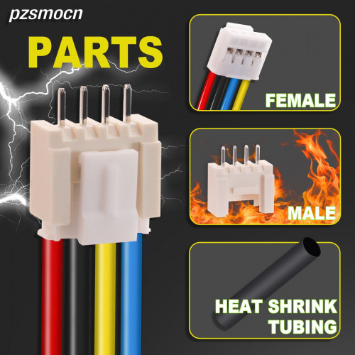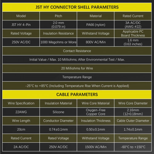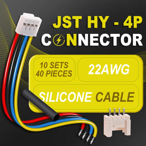 JST 2.0 mm HY 4-Pin Connector 22AWG 20cm Silicone Cable (10 Sets / 40 Pcs)