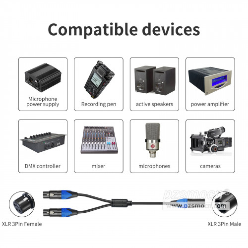 Suitable for professional audio systems, stage mixing consoles, amplifier equipment, microphone arrays, and other scenarios that require XLR interface to be split into two for expansion.