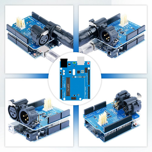 This DMX / RDM Shield is a low cost high quality solution that allows you to connect your Arduino driven artwork into DMX512 networks. The shield is populated with high quality NEUTRIK XLR 3pin Connectors (1x male and 1x female). The MAX485 based shield can be used as DMX Master, Slave and as RDM transponder.A unique RDM device id will be handed out from out range to you as well, this will make your device worldwide unique.