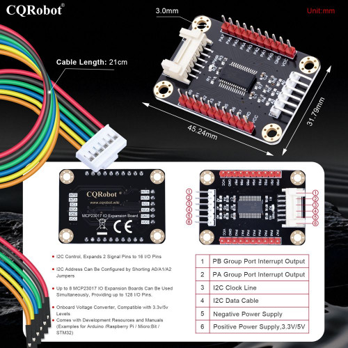 Wiki: http://www.cqrobot.wiki/index.php/MCP23017_IO_Expansion_Board_SKU:_CQRMCP23017A
