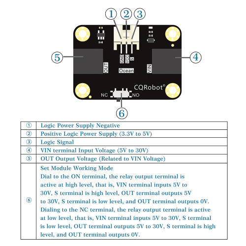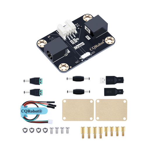Relay is an automatic switching element with isolation function, which is widely used in remote control, telemetry, communication, automatic control, mechatronics and power electronic equipment, and is one of the most important control elements. The traditional relay module has complicated wiring and is not friendly to novice makers or electronic enthusiasts. The CQRobot relay module simplifies the wiring of traditional relays. The input terminal is equipped with an adapter, which is compatible with most power supplies and battery boxes. , DC power supply, power bank, etc. While simplifying the wiring method, the functions of the relay NC and NO are retained, and only a simple adjustment of the toggle switch is used to switch between normally open and normally closed modes.