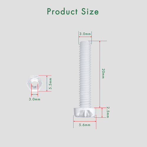 - Thread size: M3 * 20 mm / 0.118 * 0.787 inches ( D * H )