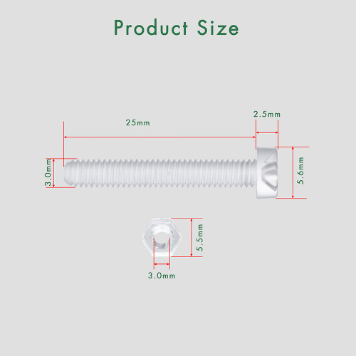- Thread size: M3 * 25 mm / 0.118 * 0.984 inches ( D * H )
